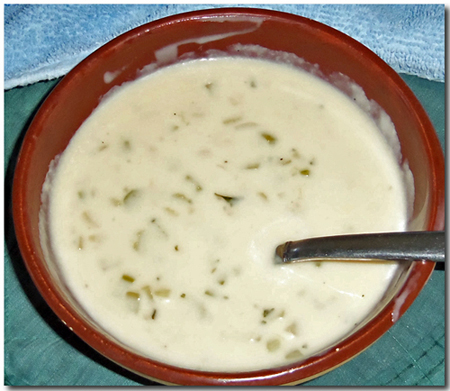 *Substitution: I didn't have chicken stock on hand when I recently prepared a batch of Cream of Celery Soup. Instead, I improvised by using two beef bouillon cubes dissolved into four cups of boiling water as a substitute. I also didn't have access to a food processor on the particular day I prepared the soup, so I merely chopped the celery and onions into small, thin pieces before cooking them in butter. The soup was delicious without using the chicken stock, although extra salt is not needed if beef stock is used. ~ Shenanchie ~