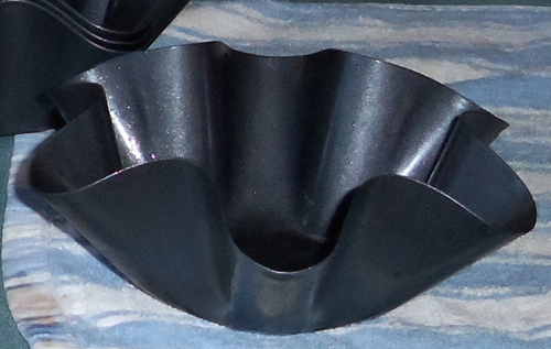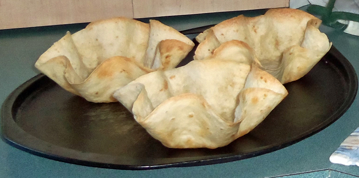 From left to right: Tortilla shell baking mold and tortillas after baked in molds.